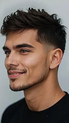 Okay, so check out this dude’s hair. That’s not just any haircut, that’s a *fade*. It’s like your hair is trying to subtly disappear, but in a super stylish way. You’ve got the short sides that fade smoothly into the skin, and then BAM, all that volume on top! If your hair could have a personality, this one would be the cool, chill guy who’s secretly the smartest in the room.