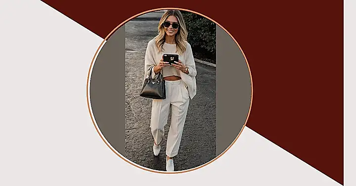 This outfit screams “I’m ready for fall, but I’m not ready to give up comfort!” The cozy sweater looks like it’s perfect for chilly mornings, and those white pants? Let’s just say they’re giving “walking on sunshine” vibes. You can totally picture yourself rocking this look while grabbing a pumpkin spice latte (or maybe even an apple cider donut!), right?