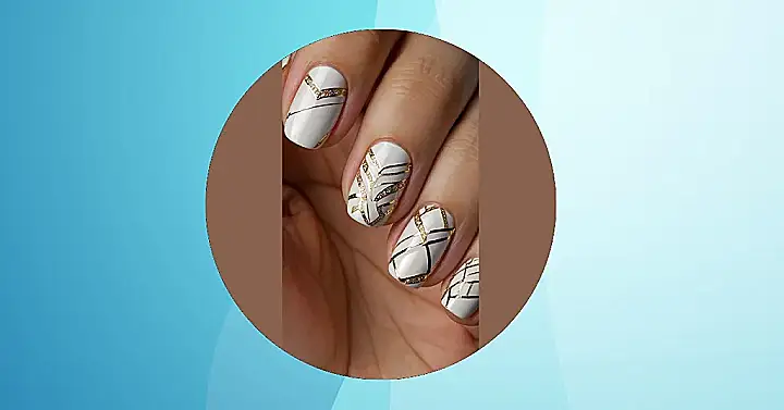 Walking around with nails this fancy feels like I’ve suddenly unlocked a secret level of sparkle. These aren’t just nails, they’re tiny masterpieces with white polish backgrounds sporting gold lines and little gems that catch the light just right. I keep accidentally pointing at things with exaggerated hand movements, just to make sure everyone catches a glimpse of this finger upgrade. Warning: wearing fancy nails like these may result in excessive hand-waving and impromptu disco dances.