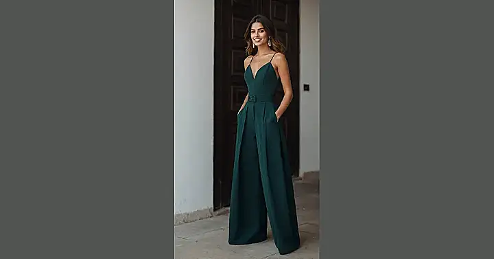 Thinking about what to wear to a fiesta can sometimes feel like a treasure hunt for the perfect mix of fancy and fun. While flowy dresses are great, sometimes you just want to shake things up! This stunning green jumpsuit walks in and basically says, “Party’s here, and I brought my A-game.” It looks totally put-together, making you feel like you could totally walk a red carpet, but also has that easy vibe perfect for mingling and laughing without tripping over yourself. It’s a definite head-turner that says you’re ready for a good time!
