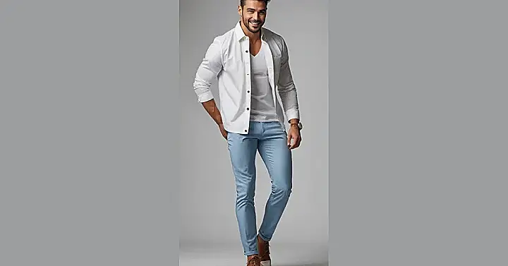 Who says style has an age limit? Forget everything you thought you knew about getting older and giving up on looking good. This guy in the picture, rocking those cool blue pants and crisp white shirt, shows that timeless fashion is the real superpower. It’s like finding a cheat code for looking effortlessly awesome, whether you’re navigating high school drama or just trying to remember where you put your keys. This kind of simple, clean look just works, proving you don’t need flashy trends to make a statement – sometimes, quiet confidence is the loudest style statement of all.