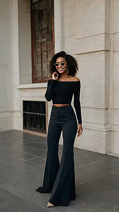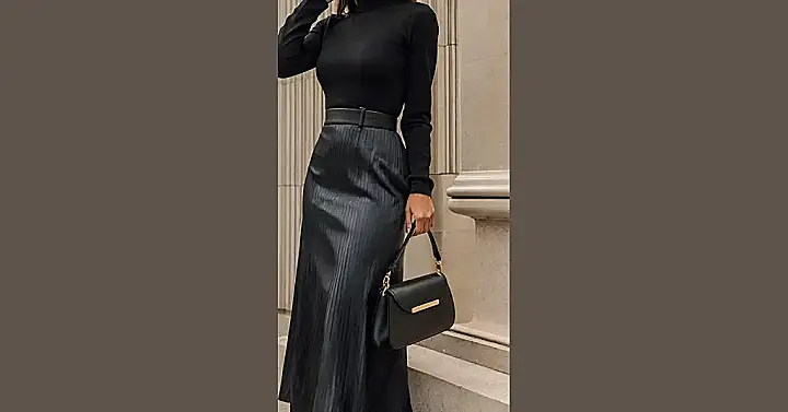 **Paragraph 1:** Okay, so picture this: you’re in school, right? Suddenly, you need an outfit that screams “I’m sophisticated and totally cool,” but you don’t want to look like you’re trying *too* hard. Enter this classy black outfit! It’s like the ultimate power move – all sleek black pants and a perfectly fitted turtleneck. Forget your jeans and hoodie; this is the kind of outfit that makes you feel like you could casually solve a mystery between classes (or maybe just ace that history test). This woman in the picture totally rocks it!