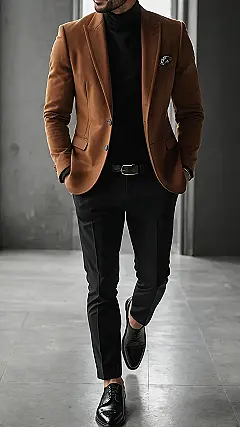 Looking good doesn’t have to feel like rocket science, trust us. This look, straight from the latest men’s fashion trends playbook, is basically saying, “Yeah, I know what I’m doing… mostly.” It pairs a cool, comfy jacket with trousers that aren’t your usual jeans, making you look put-together without feeling like you’re heading to a job interview. It’s like wearing pajamas but somehow looking like you just walked off a magazine cover, all thanks to earthy tones and clean lines. Pretty slick, right?