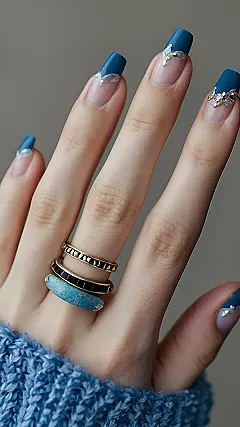 And speaking of sparkle, check out those rings! They’re totally complementing the classy vibe of the nails. It’s the perfect match – subtle, elegant, and pretty enough to make anyone do a double take. These nails plus those rings? It’s a guaranteed recipe for getting compliments all day long. You know, the kind of compliments that make you feel like you’re walking on a cloud…a very, very stylish, blue cloud.
