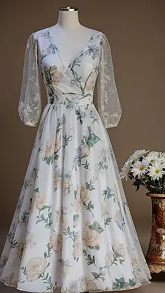 This dress is like a garden party you can wear! Imagine strolling through a field of wildflowers, feeling the breeze, and looking absolutely stunning in this floral frock. It’s the perfect outfit for a picnic, a summer concert, or even just pretending you’re a princess in your own backyard. The colours are so dreamy, and the way the fabric flows? It’s like magic!