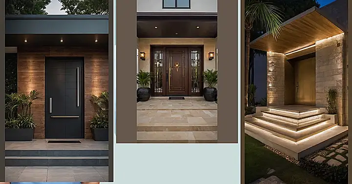 Behind that super fancy main entry door, you just know something cool has to be happening. With a door that massive and a setup this swanky, maybe it’s a secret headquarters, or perhaps just a place where someone *really* likes bright lights on their stairs. It makes you wonder who lives there and if they always greet guests with a spotlight and a dramatic flourish. It’s like the house is screaming, “Behold! The threshold of awesome… or maybe just a very tidy hallway!”