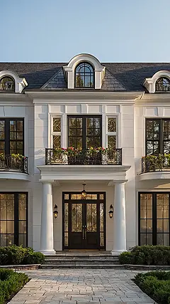 Wow, check out this white house exterior! It’s so blindingly white, you’d think it washes itself every morning. That crisp white paired with the sharp black door and windows makes it look like a super fancy robot designed it – all neat lines and zero mess. You can practically hear it whispering, “Please remove your shoes… and maybe your entire dirty day… before approaching.” I bet if you dropped a crumb on that front step, it would send you a formal eviction notice by carrier pigeon.