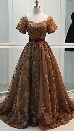 Okay, so maybe this dress isn’t screaming “red roses and chocolates,” but hear me out! Imagine rocking this gorgeous brown frock to a Valentine’s Day dance – you’d be like a walking, talking, totally unique love poem! Everyone else will be in the typical pinks and reds, and you’ll be over there serving up sophisticated elegance. Plus, the floral details are like a secret garden of romance, just waiting to bloom.