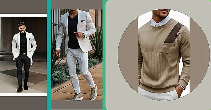 This guy’s outfit is so smooth, it’s practically gliding across the room! He’s rocking a creamy, super-soft sweater that looks like it’s made of clouds. Pair that with some seriously sharp navy pants, and you’ve got yourself a look that’s both relaxed and ridiculously stylish. It’s the kind of outfit that whispers “I’m successful, but I also know how to chill.” Forget the stuffy suits; this is high-end fashion that’s actually comfortable enough to relax in. He looks ready for anything, from a fancy dinner to a casual hang out with friends.