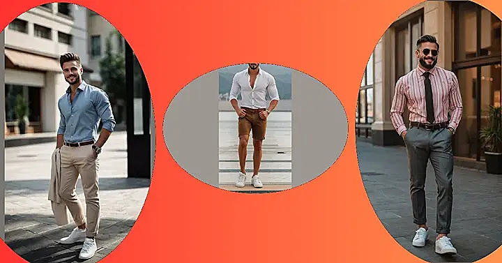 So, you want to rock a men’s shirt outfit, huh? Well, check out this dude! He’s got the “business on top, party on the bottom” look down. It’s like he couldn’t decide if he was going to a fancy lunch or hitting the beach, so he just said, “Why not both?!” The white shirt is a classic, but those brown shorts are throwing a curveball that’s kind of awesome. He looks ready to negotiate a huge deal then immediately go for a swim!