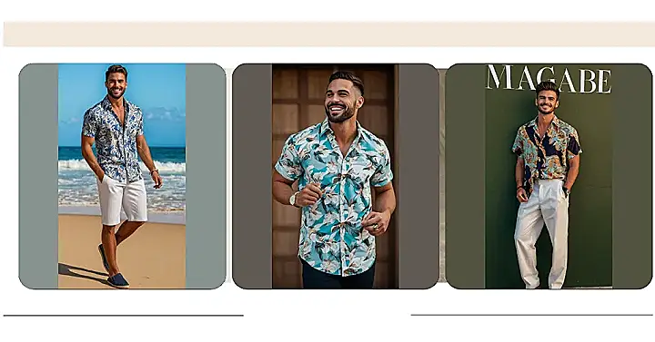 Imagine rocking this look at a summer BBQ or a casual get-together with friends. It’s comfortable enough to play frisbee (or just relax!), but also put-together enough to make a great impression. Forget boring outfits; this combo shouts summer fun and confidence. Plus, who doesn’t love a guy who can rock bold prints and still look effortlessly cool? This is definitely a look you can copy to impress everyone.