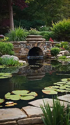 Imagine a tiny, whimsical world tucked away in a small garden – a house pond so charming, it’s practically begging for a fairy godmother! This isn’t your average backyard puddle; we’re talking a meticulously crafted haven of calm, complete with chubby lily pads looking like giant, green cookies floating on a mirror-like surface. The stonework is so neat, it looks like a miniature castle built just for the resident frogs (if they’re lucky enough to live there!). Seriously, this little pond is more “Zen garden” than “garden hose”.