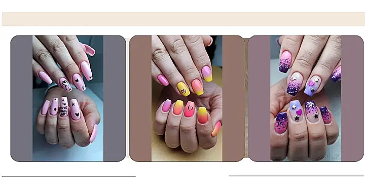 These nails are like a sunny vacation in the middle of winter! Imagine you’re sipping hot cocoa by a fireplace, but your fingertips are sporting a vibrant sunset ombre. Those tiny hearts add the perfect touch of cuteness – it’s like a little secret message for your own happy place. Who needs a snow day when you have nails this cheerful?