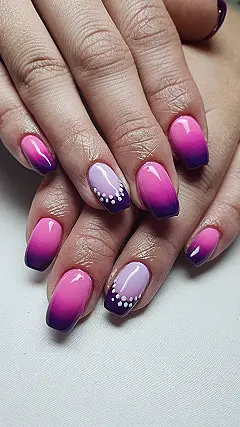 These nails are like a sunset in winter – seriously pretty, but way easier to achieve than actually catching a sunset! The ombre effect, going from pink to purple, is super chic and totally on-trend. Those little white dots on a couple of nails add a touch of playful whimsy – like tiny snowflakes resting on a frosty purple flower. They’re perfect for a casual day or even a holiday get-together! No need for complicated nail art skills here – just gorgeous, simple winter vibes.