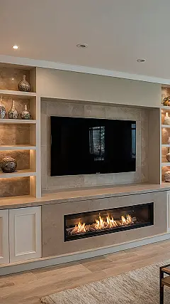 Honestly, with a fireplace like this glowing away, you might struggle to even watch the TV! It’s so sleek and built-in, making the whole room feel instantly more awesome. Plus, think of the bragging rights! “Yeah, I’m just chilling by the fire… and watching hilarious cat videos.” It turns your basic living room into the ultimate hangout zone, perfect for surviving cold weather or just making every day feel a little more luxurious and a lot more chill.