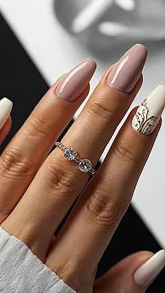 Check out these beauties! They’re not just nails; they’re tiny little party hats for your fingertips, ready for pool lounging or boardwalk strolls. The soft peachy color is totally chill and goes with everything, but that gold glitter detail? That’s your nails saying, ‘Hello, summer nights and maybe even a little ice cream!’ They’re basically a mini light show you can wear everywhere, guaranteed to get compliments, possibly even from the waves themselves (okay, maybe not the waves, but you get the idea).