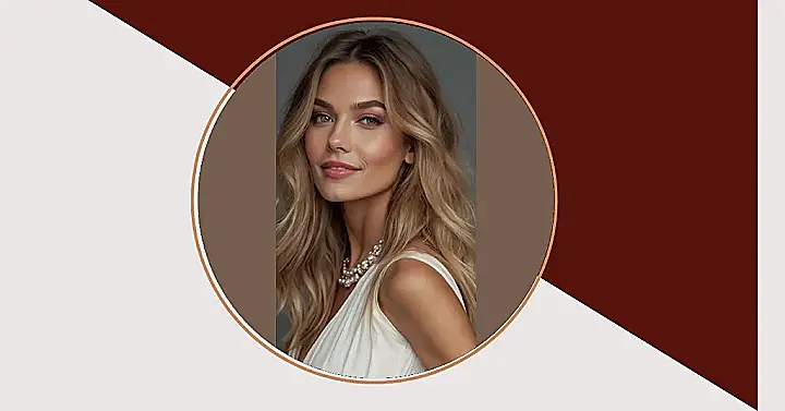 This picture is like a sunbeam captured in a photo! Look at that amazing blonde hair color – it’s so shiny and bouncy, it practically begs you to run your fingers through it. I bet she smells like sunshine and coconuts, and probably spends her weekends surfing and building sandcastles. Seriously, whoever she is, she’s got that “I woke up like this” look down to a T, even with that gorgeous pearl necklace!