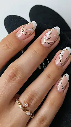These aren’t your grandma’s French nails! Forget plain white tips – these babies are decked out in sparkly gold accents and chic geometric designs. It’s like a fancy French manicure went to art school and got a serious upgrade. They’re so pretty, you’ll want to show them off everywhere you go! Imagine rocking these at your next school dance or even just casually strolling through the mall – these nails are sure to turn heads.