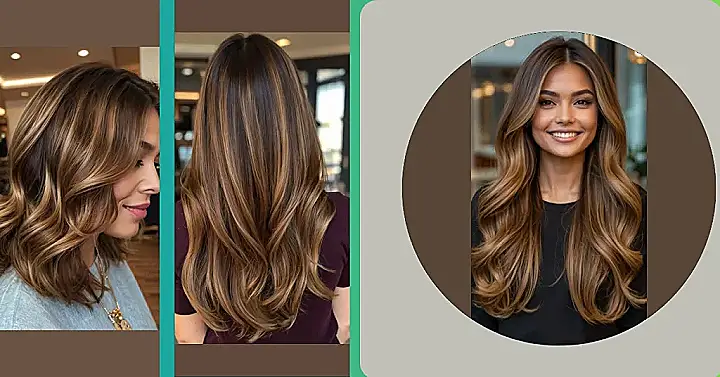 This hairstyle is like a sun-kissed dream! Look at those gorgeous honey brown waves; they’re so long and luscious, you could practically get lost in them (not that we’d recommend trying that!). It’s the perfect honey brown balayage—those lighter highlights are like little bursts of sunshine peeking through, making her hair look extra vibrant and healthy. It’s the kind of hair you just want to run your fingers through (but, again, maybe ask first!).