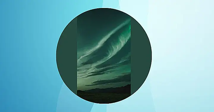 This picture looks like someone took a giant paintbrush and swirled some emerald green paint across the sky. It’s like those super cool clouds you see in a science fiction movie! Maybe it’s a little bit of magic too, because those colors look like they could be a secret hidden in the night sky.