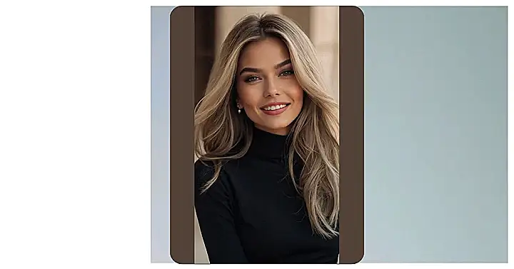 Hey there, future hair-styling gurus! Check out this awesome hair cutting style. See those perfectly-placed bangs? They’re like a frame for her gorgeous smile. This isn’t your grandma’s hairdo – it’s super modern and stylish. It’s the kind of look that screams “I woke up like this” (even if you secretly spent an hour perfecting it). Plus, the golden sweater? It’s the perfect autumnal vibe. It’s like she’s ready for a pumpkin spice latte and a stroll along a sandy beach. Basically, pure goals!
