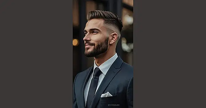 Want to ditch the same old boring haircut that’s been following you since middle school? This hairstyle is like your hair is going to a party! It’s got that cool, swept-back thing happening on top, like it’s ready for anything. Plus, the sides are super short and clean, so it’s not a total “hair-don’t” situation.