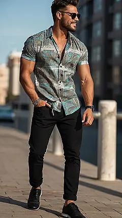 That summer shirt is the MVP of this whole outfit, trust me. It’s like the anchor that pulls everything together without trying too hard. Pair it with white jeans and sneakers just like the guy in the picture, and you’re ready to conquer anything from awkward family barbecues to that sweet summer party you’ve been waiting for all year.