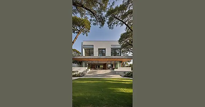 Checking out a house like the one in this photo is basically like scrolling through the ultimate ‘future goals’ list, except way more exciting than clean socks. Seriously, look at those giant windows and the fancy balcony! You could totally host the most epic movie nights ever with that view, or maybe use the balcony for important dramatic entrances (or just escaping your chores). It’s the kind of place that makes you think, “Yep, definitely adding this style to my personal ‘No Chores Allowed’ dream house plans.” Imagine having the perfect spot for your gaming setup right by those big sliding doors – sunshine and screen time, the ultimate combo!