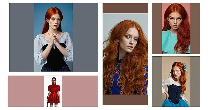 This picture is like stepping into a fairytale! The model’s fiery red hair is like a crown, and her makeup is so dramatic, it looks like she’s about to star in a play. You know what they say, redheads have a certain magic about them! Those big, bold earrings add just the right amount of sparkle to complete her look.