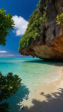 This photo is so stunning, you might think it’s been Photoshopped! It’s like a real-life postcard of a secret island hideaway where the water looks like melted turquoise candy. You can almost hear the waves gently lapping against the shore, and imagine yourself chilling out under that big cliff, maybe even spotting a pirate or two! Just promise us you won’t keep this place a secret – everyone deserves a little bit of island bliss.