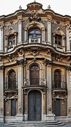 Hey everyone! Check out this building – it’s like a giant, super-fancy cake made of stone! That’s Baroque architecture for you: lots and lots of swirls, curves, and decorations. Imagine a sculptor went completely wild and decided to cover a building in every ornament he could possibly think of. It’s not minimalist, that’s for sure! Those balconies, with their fancy railings and little statues? Those arched windows and doorways, all super detailed? Pure Baroque craziness! It’s like someone took a regular house and said, “Let’s add more… EVERYTHING!”