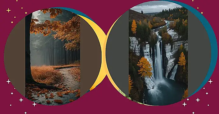 But wait! There’s even more to this picture! Look closely at the bottom – that little island in the middle is covered in trees. And get this, they’re all different shades of red, orange, and yellow! It’s like someone sprinkled fall foliage magic on top of the already amazing waterfall. It’s the kind of place that makes you realize how lucky we are to live in a world with so much beauty.