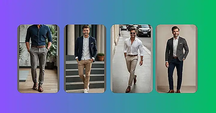 Check out this dude looking sharp! He’s rocking the classic “business casual but make it cool” vibe. That clean white shirt, those perfectly creased pants, and the smooth brown shoes with a matching belt make him look ready to close a big deal or maybe just get the best table at the cafe. It’s like his clothes are saying, “Yep, I’m here to handle business,” even if the only business is remembering his grocery list. This is a prime example of men’s business outfits that aren’t afraid to look good while getting stuff done.
