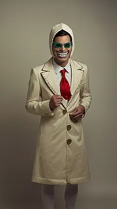 He even has a pocket on his shirt that looks like it has a mini picture of him inside. It’s like he’s trying to show off how much he cares about fashion! This costume is perfect for the Halloween party where you want to look effortlessly cool while still getting a few laughs. It’s like a playful twist on a classic Halloween look!