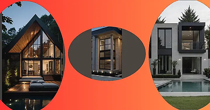 This house is like something out of a magazine! It’s sleek and modern with tons of windows, so you can always see the gorgeous view. The black and wood accents are super trendy, and the house looks super cozy with the lights on inside. It’s like something straight out of a movie!
