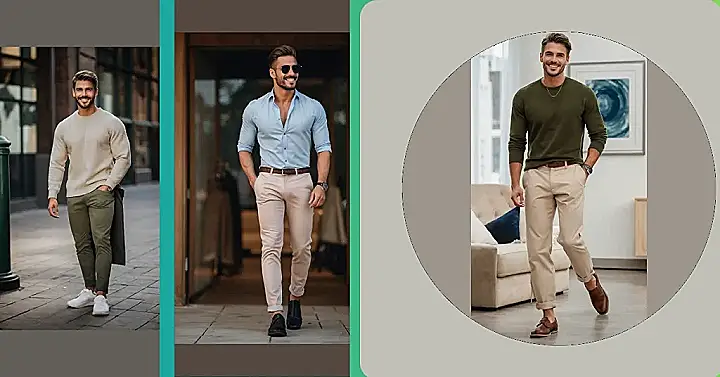 Think of this outfit as the “cheat code” for looking good without trying too hard. It’s like showing up to a party in your coolest jeans and favorite band tee, but this time, you’ve leveled up the jeans to stylish khakis and ditched the band tee for a solid color that makes you look instantly put-together. The best part? You probably already have half of these pieces in your closet.