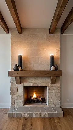 Check out this fireplace! It looks like something straight out of a cozy cabin Pinterest board, but, you know, way cooler and probably less likely to give you splinters. That stone wall and chunky wooden mantel just scream “snuggle up here with a giant hot chocolate and forget about that mountain of homework.” That crackling fire isn’t just for keeping warm; it’s basically the ultimate Netflix binge-watching companion, guaranteed to make your snacks taste better (maybe?). Plus, that big wooden shelf is perfect for displaying whatever cool or random things you find, just try not to accidentally melt those giant candles.