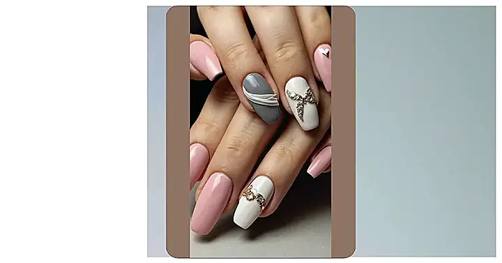 Forget boring red nails this Valentine’s Day! These nails are way more fun and fancy. We’ve got pretty pink, elegant grey, and sparkly white – a total mix-and-match masterpiece. Imagine showing these off at your Valentine’s Day dance or even just chilling with friends; you’ll be the envy of everyone! They’re like a mini-jewelry box on your fingertips, only way more comfortable than actually wearing a lot of bling.