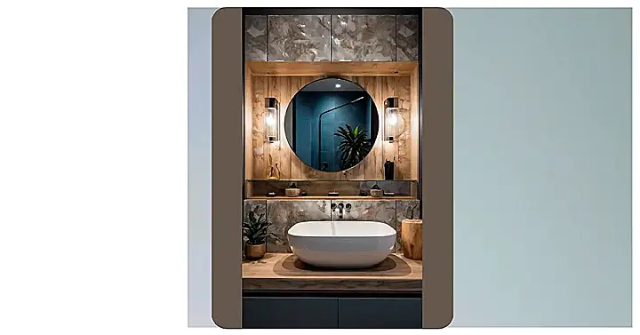 This isn’t just a bathroom; it’s like a secret hideout for relaxation. With that giant window looking out at the trees, you can practically hear the birds chirping while you brush your teeth. Plus, that cool, glowing thing in the middle looks like it came straight out of a sci-fi movie. Getting ready in the morning might actually become something to look forward to!