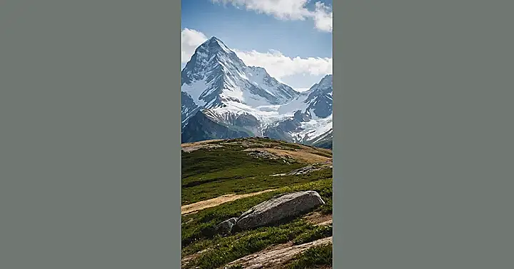 Looking at this amazing mountain view makes you realize that taking pictures of places this huge is kind of like trying to capture a whole elephant using only a tiny teacup. You’ve got these massive peaks just towering over everything, demanding attention, while the little trees and rocks down here are just trying to look cool in the foreground. Getting the shot involves hiking, maybe dodging a confused sheep, and figuring out how to make a giant mountain fit nicely into your camera frame without looking like a tiny bump on the horizon.