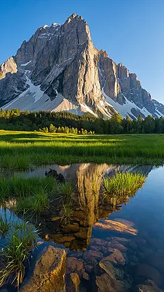 Wow, talk about a mountain that loves itself! This photo captures that giant rock formation looking absolutely stunning, so stunning that the water below is like, “Hey, I want to look like you!” It’s basically nature taking the best selfie ever, with the lake acting as the ultimate filter and reflection app. Someone had to be pretty dedicated to get this shot, probably waking up before the sun even considered getting out of bed, just to capture the mountain in its prime golden hour glow.