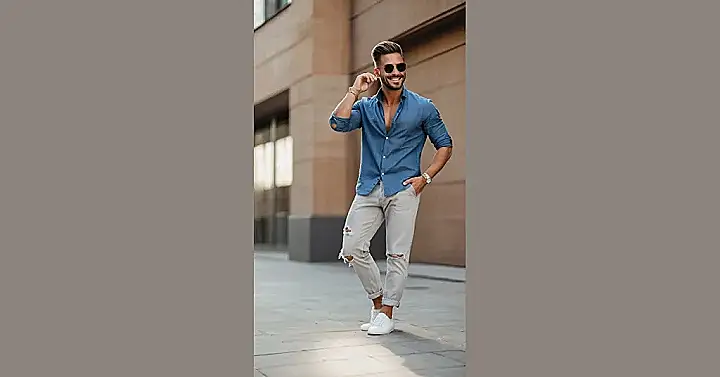 So, you want to look this cool heading into the weekend? This guy’s got the right idea! He’s rocking a super chill denim shirt and ripped jeans combo that says, “I’m stylish, but I’m also ready to chill on the couch and binge-watch my favorite show.” He’s basically winning the weekend before it even starts, and you can too.