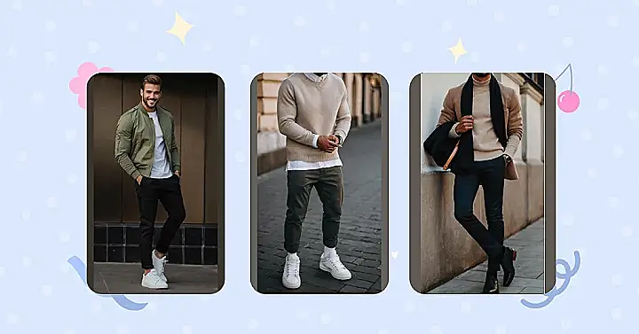 But let’s be honest, the real star of the show here are those white sneakers. They’re clean, classic, and they add just the right touch of casual cool. Plus, they’re perfect for kicking leaves and running around with your friends. It’s almost like this guy’s saying, “Fall’s here, and I’m ready to embrace all its awesome things.”