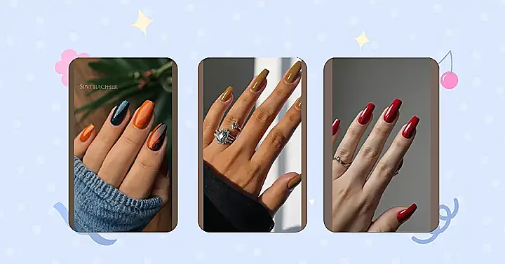 Of course, we can’t overlook the charm of nail art! From whimsical leaves swirling around dark black bases to playful designs that reflect the harvest season, we’ve got plenty of artsy inspirations. These unique looks will draw attention to your fingertips and have people asking where you got them done!