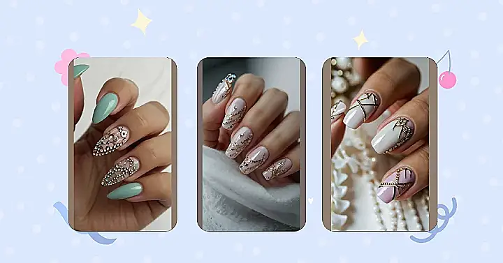 Wow, check out these nails! They’re like a mini-disco party on your fingertips. Imagine trying to sneak into a concert with these – security wouldn’t even have a chance to stop you because they’d be too busy admiring the dazzling sparkle and gorgeous, pretty nail art designs. Those delicate pastel pinks and minty greens are seriously dreamy, and who doesn’t love a little extra bling?
