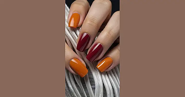 Hey there, nail fanatics! Check out these super-chic nails – they’re the perfect example of “trendy minimalist nails.” Forget sparkly glitter and crazy designs; this look is all about clean lines and sophisticated colors. It’s like a super-stylish, grown-up version of a Halloween manicure (without all the spooky stuff). Seriously, who needs a bunch of crazy nail art when you can rock this gorgeous burnt orange and deep burgundy combo? It’s simple, elegant, and totally on-trend. You’ll be the envy of everyone at school!