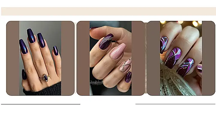 But wait, there’s more! Let’s chat about designs. Cat-eye nails are all the rage, adding an edgy twist to your traditional violet nails. And don’t shy away from accentuating your vivid purples with complementary blues, browns, or even a striking black. You’ll find that the possibilities are endless when you start mixing and matching shades. Your nails can surely become the talk of the town!