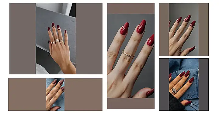 This picture shows some seriously cool nails! That deep red color is totally giving off autumn vibes, which is perfect for when the weather gets chilly. It looks like the person in the picture is also rocking a super fancy ring with a big sparkly stone. It’s like a princess ring, but maybe a little more modern. Maybe they’re getting ready for a fancy event, or maybe they just want to feel extra glam! Either way, they’re definitely making a statement with their bold nails and dazzling jewelry.