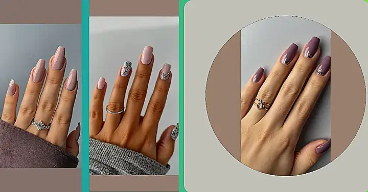 This picture shows some seriously awesome fall nail colors! That dusty mauve shade is perfect for the season, and the glittery gold accents are just the right amount of sparkle. It’s like having a little bit of pumpkin spice on your fingers – who doesn’t love that?!