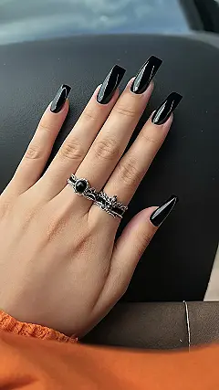Plus, those rings with the black stones are the perfect finishing touch! It’s like they’re ready to cast a spell on anyone who stares at them. If you’re looking for a Halloween nail design that’s both spooky and fashionable, this is the one for you.